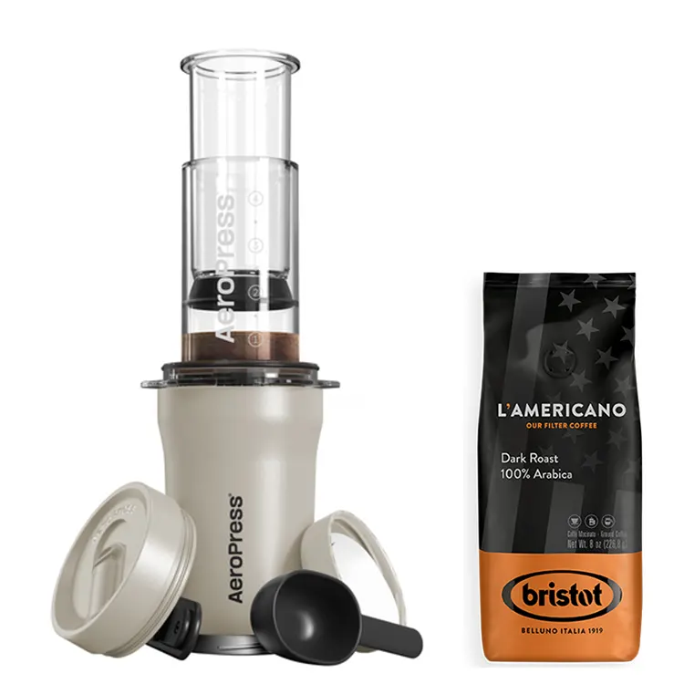 AeroPress Go Plus Coffee Maker Cream + Bristot l’Americano koffie