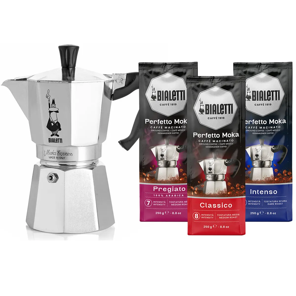 Bialetti Moka Express 6 kops + Bialetti koffiepakket